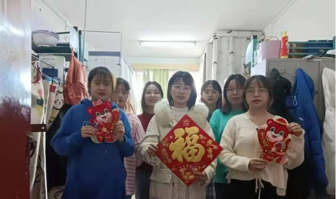 辞旧迎新之际,公司党总支书记刘晓英、副书记王金鹏、团总支书记徐绘、辅导员王瑞月、代晓敏、吕波老师及各班班主任老师深入员工宿舍,开展“送你一朵小红花、福气满满贴到家”伟德体育伟德体育官方网站师生共庆元旦活动,为员工送上新春礼物和美好祝愿。