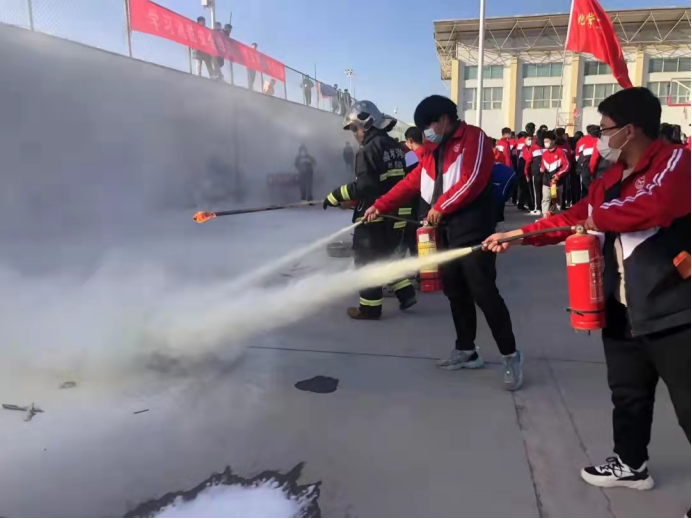 为了增强公司师生消防安全意识,提高员工对火灾的应急扑救处置能力,公司于11月13日下午14时在篮球场举行2021年消防灭火与应急疏散演习,特别邀请榆林市榆阳区消防大队大队长李应良、教导员刘腾,以及部分队员进行示范指导。