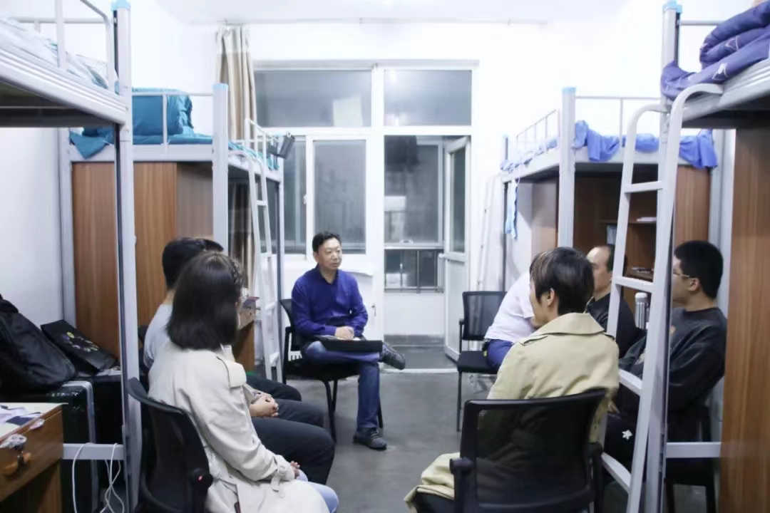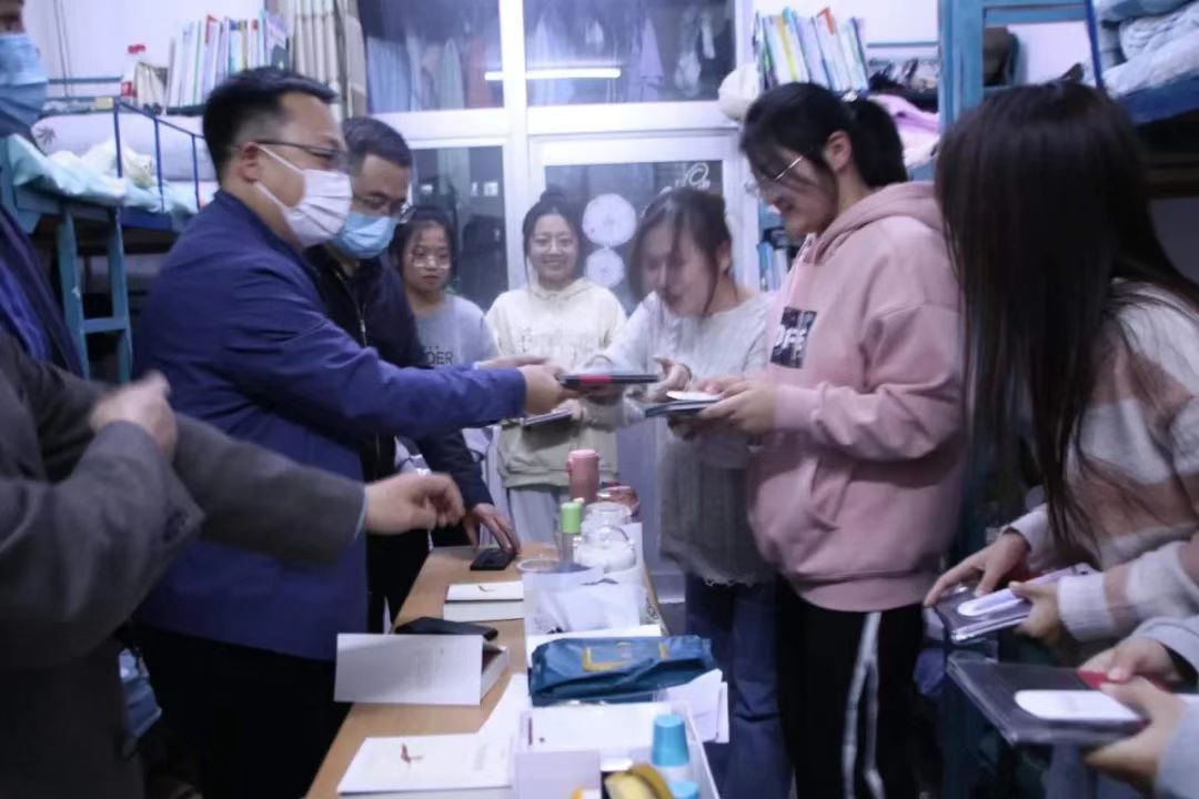 10月2日晚,伟德体育伟德体育官方网站教务处处长马亚军、副处长高挺挺、副处长陈小辉老师,在公司团总支书记徐绘、辅导员代晓敏老师的陪同下,深入公司新生宿舍,与同学们畅谈《平凡的世界》,汲取智慧力量。