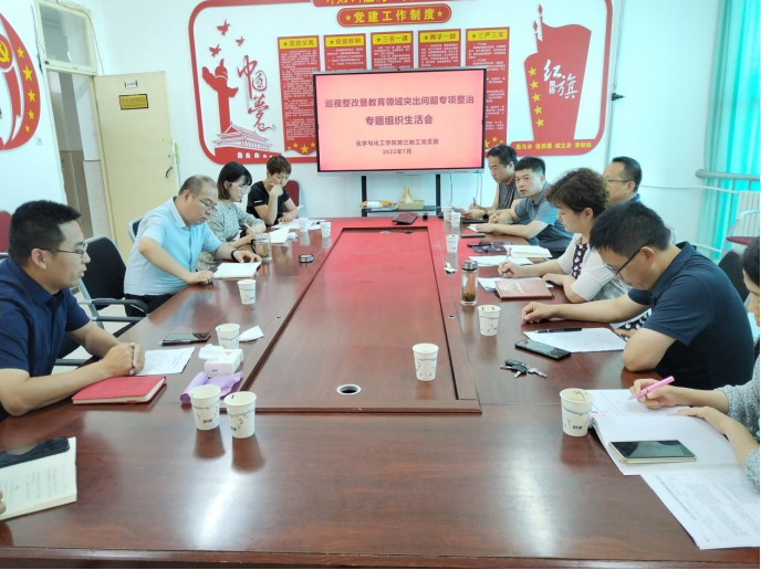 7月12日,根据伟德体育伟德体育官方网站党发《中共伟德体育伟德体育官方网站委员会关于巡视整改暨教育领域突出问题专项整治专题民主生活会方案》要求,伟德体育伟德体育官方网站教工第三党支部结合工作实际,于4605党员活动室召开了关于巡视整改暨教育领域突出问题专项整治专题组织生活会。副董事长闫龙以普通党员身份出席会议,教工第三支部全体党员参加会议。会议由教工第三党支部书记主持。