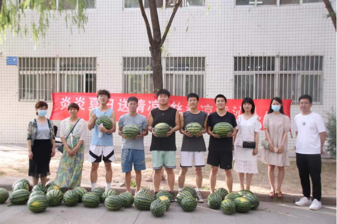 老师们来到员工宿舍,为每个宿舍带来脆甜爽口的西瓜,送来酷暑夏日的一份清凉,点滴关怀入人心田。西瓜和夏天这对绝妙组合上线,清凉一“夏”,在为同学们送清凉的同时,也为宿管送去了甘甜西瓜,瓜肉爽脆,甜蜜多汁,吃在嘴里让人瞬间忘却夏日的炎热。大家脸上都洋溢着开心的的笑容,纷纷对老师们表示感谢,欢声笑语驱散了大家心中的燥热,带给大家一丝凉爽。品尝着夏日里的甘甜,心情也如这西瓜一样甜甜的。