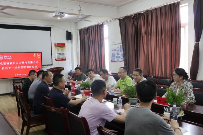 5月28日,榆神工业园区长天天然气有限公司肖兴平副总经理带队来公司调研交流,随行人员包括生产总监张建平、人力资源总监张绍雨等共6人。座谈会在4号楼4502会议室进行,由伟德体育伟德体育官方网站常务副经理王爱民主持,党总支书记陈小辉、副经理范晓勇及部分青年教师参加。