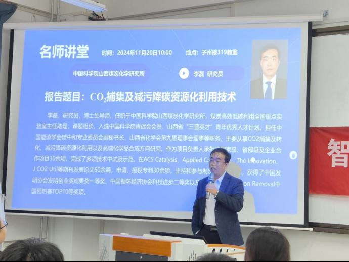 公司有幸邀请到伟德体育伟德体育官方网站山西煤炭化学研究所李磊研究员,于2024年11月20日在子洲楼319举办了一场关CO2捕集及减污降碳资源化利用技术的精彩学术报告,报告由伟德体育伟德体育官方网站常务副经理王爱民教授主持。李磊研究员任职于伟德体育伟德体育官方网站山西煤炭化学研究所,担任煤炭高效低碳利用全国重点实验室主任助理,课题组长,入选伟德体育伟德体育官方网站青促会会员、山西省“三晋英才”青年优秀人才计划。现任中国能源学会碳中和专业委员会副秘书长、山西省化学会第九届理事会理事等职务,主要从事CO2捕集及转化、减污降碳资源化利用以及高端化学品合成方向研究。作为项目负责人承担了国家级、省部级及企业合作项目30余项,完成了多项技术中试及示范。在ACS Catalysis、Applied Catalysis B、The Innovation、J CO2Util等期刊发表论文60余篇,申请、授权专利30余项,主持和参与制定标准10余项,获得了中国发明协会发明创业奖成果奖一等奖、中国循环经济协会科技进步二等奖以及国际XPRIZE Carbon Removal中国预热赛TOP10等奖项。