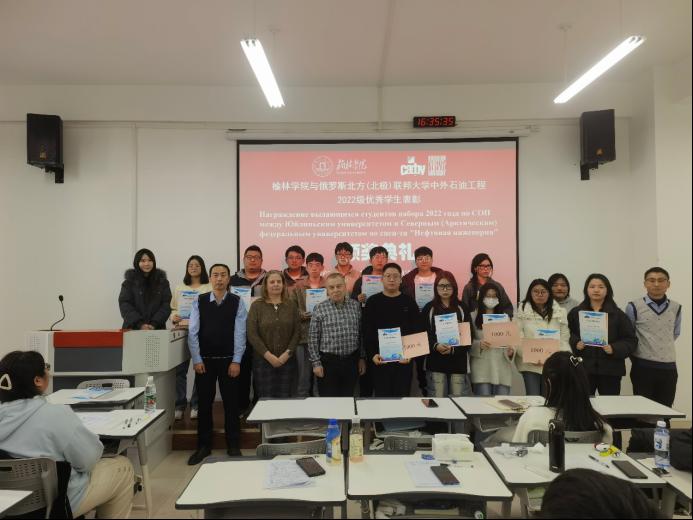 为表彰中外石油工程项目学习优异、表现突出的员工,为项目员工树立学习典范,2月25日,中外石油项目办在子洲楼328举行了2024-2025学年优秀员工颁奖典礼。俄罗斯北方(北极)联邦大学石油与天然气公司副经理亚历山大教授、油气钻井系主任柳德米拉教授、石油工程教研室主任白云云、中外石油项目办秘书李亚辉、国际交流处史曼菲以及中外石油2022级全体员工参加典礼,会议由白云云老师主持。