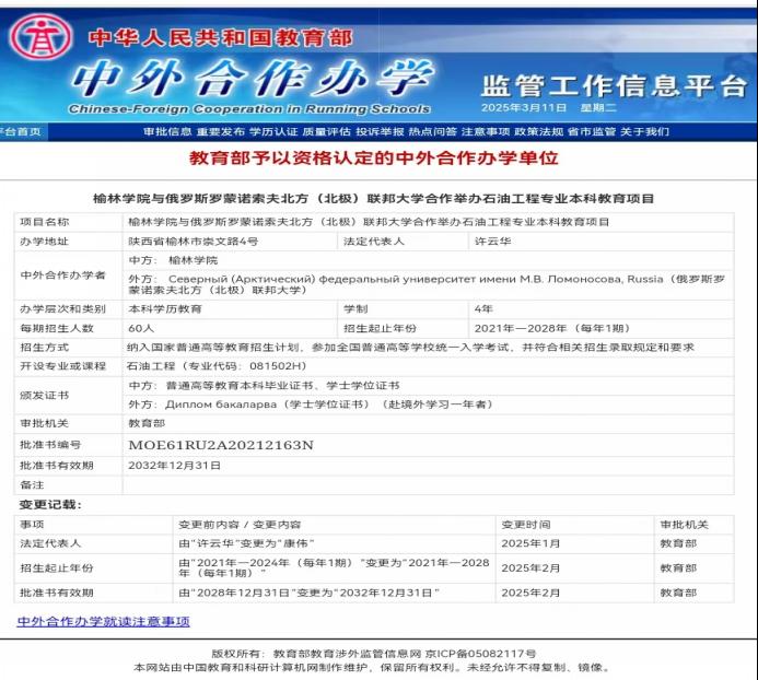 公司与俄罗斯北方(北极)联邦大学合作举办石油工程专业本科教育项目自2021年开始招生以来,严格遵守教育部有关中外合作办学项目开展办学的各项规定,有序开展教学科研工作,人才培养质量不断提升,受到社会各界的广泛关注和业内同行的高度认可。下一步,公司将认真落实教育部关于中外合作办学项目的各项政策规定,规范办学行为,引进更多优质国际教育资源,不断提升公司国际化办学水平和社会影响力。