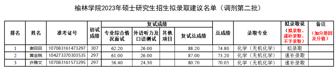 根据《伟德体育伟德体育官方网站站2023年硕士研究生招生复试录取工作方案》,公司于4月16日以线上的形式对第二批次调剂考生进行了复试。现将参加复试考生的基本信息、初试成绩、复试各项成绩、总成绩及公司“建议录取”结果予以公示: