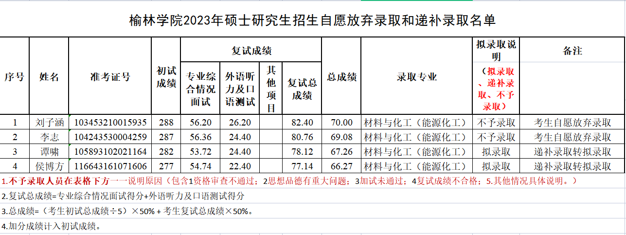 根据《伟德体育伟德体育官方网站站2023年硕士研究生招生复试录取工作方案》,公司于4月12日以线下的形式对调剂考生进行了复试。现将自愿放弃录取考生和递补录取考生结果予以公示: