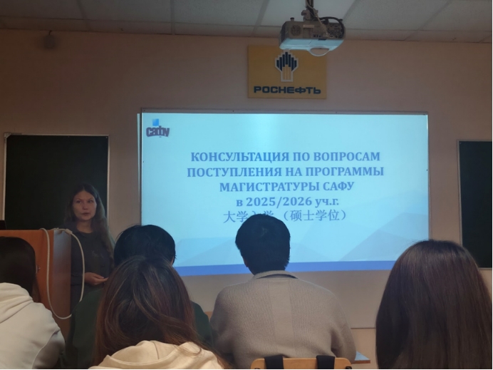 俄罗斯北方(北极)联邦大学国际交流处负责人为员工们讲解了硕士生教育条件及俄罗斯政府为外国职工提供的教育政策,包括奥林匹克竞赛、奖学金支持、大学推荐信等,并大致讲解了申报奖学金及硕士学位的流程,为公司赴俄学子提供了后续学习方向规划。
